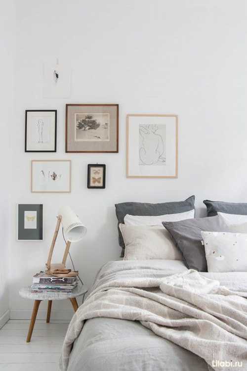 Спальня со множеством картина на стенах не лучший вариант для комнаты отдыха