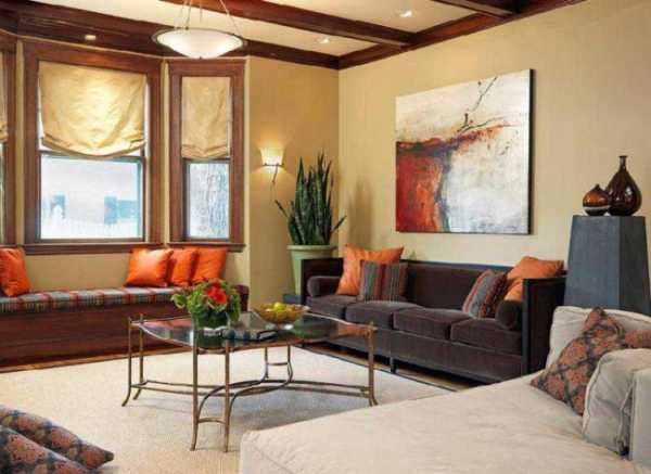 В данном случае общий тон картины совпадает с цветовым оформлением комнаты. Картина, как бы сливается с интерьером.