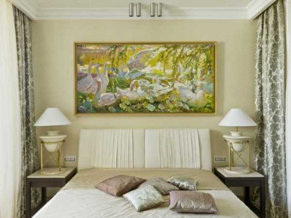 Картина в спальне поможет подчеркнуть особое изящество и неповторимый стиль этой комнаты. Картины обязательно должна создавать ощущение спокойствия и умиротворения. В таком случае лучше всего отдать предпочтение полотнам, написанным в мягких пастельных тонах. Сюжет должен быть увлекательным и спокойным, стоит избегать изображений кровавых исторических событий, пиршеств и отрицательных сюжетов, потому как в противном случае могут сниться кошмары и сон будет нездоровым и беспокойным.