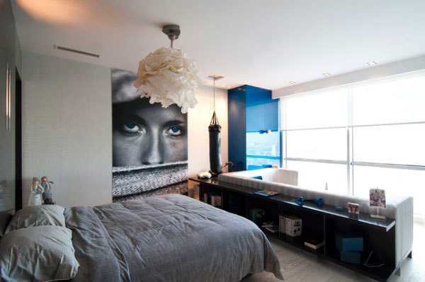 Картинами в современной спальне могут стать обычные фото ее владельца. При этом многие дизайнеры отказываются от громоздких рам и стекла, отдавая предпочтение простой электронной печати