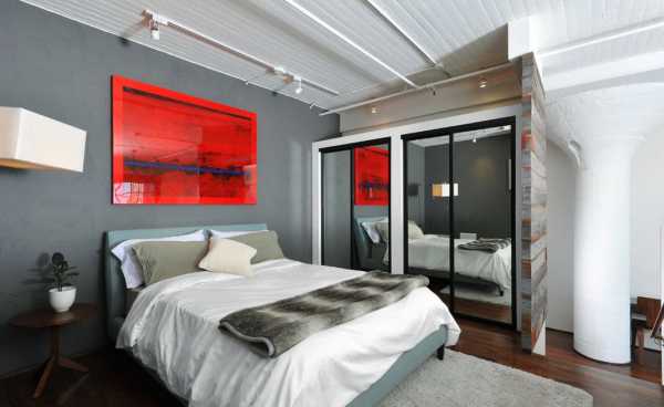 Ну кто же делает в таком стиле спальню? Есть и такие творческие личности, и здесь лучшая картина над кроватью – отсутствие картины, а то и самой кровати. Но иногда в общую атмосферу неплохо вписывается что-то абстрактное или из необычных материалов – текстиля, кожи, может быть, даже металла. Современные дизайнеры любят такие картины, сегодня ими просто завалены все творческие мастерские, к слову, их не столь сложно сделать и своими руками.