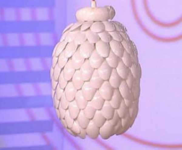 Отдельного внимания заслуживают аксессуары, наподобие светильников, которые можно сделать даже из пустой пластиковой бутылки и множества одноразовых ложек. Ниже представлен именно такой светильник – обклеенная частями ложек большая пластиковая бутылка.