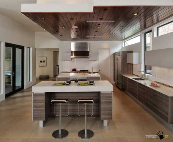 - Современная отделка потолков на кухне подразумевает использование не только качественных и экологичных материалов, но и легко протираемых, потому что копоть или жир будут оседать на поверхности, так что придется с ними бороться. Победить застывший жир можно только с применением специальных чистящих средств, которые будут раздражать большинство облицовок. Таким образом, будет необходимо подобрать такой материал, который бы был влагостойким, что упростит уборку. Кроме того, потолок не должен бояться пара и жары, ведь кухня славится непростыми условиями.