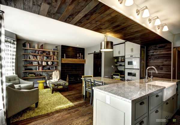 - Нестандартные материалы. Бетон, кирпич, паркетная доска, дерево и металлическая сетка… Думаете мы говорим об отделке пола? Нет! Эти материалы все чаще становятся неотъемлемой частью оформления интерьеров в стиле лофт. Особенно эффектно смотрятся такие потолки в сочетании с открытыми коммуникациями, трек-системами или светильниками-спотами.