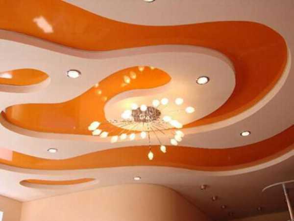 - Необычная отделка потолка гипсокартоном нетрудно выполняется. Можно создать многоуровневую конструкцию, либо с необычными наклонами и узорами (прочитайте: «Необычные потолки: включаем фантазию»). Материал легко режется, так что создать фигуры желаемого качества не составит труда, главное – правильный расчет.
