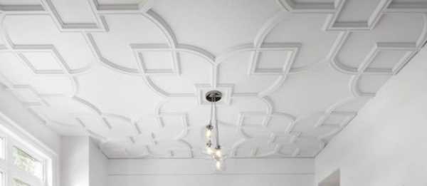 Более рельефные молдинги сделанные из гипса, обойдутся дороже, но, выглядят они более эффектно. Здесь уже понадобится приобрести либо очень прочный клей, либо придумать, как закрепить довольно тяжелые детали на потолке другим способом.
