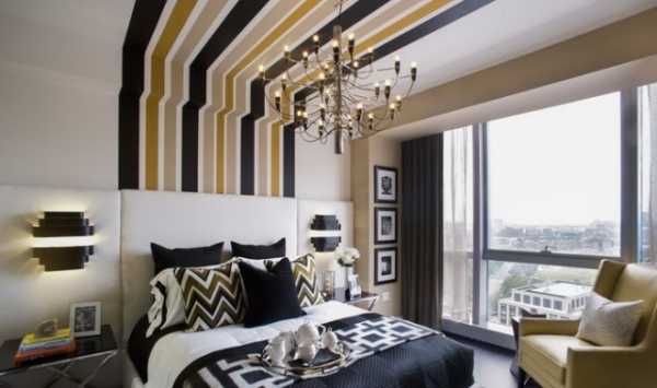 Нетипичное решение в оформлении перекрытия не всегда должно иметь сложную форму. Достаточно выбрать нетрадиционную окраску полотна и ваша комната уже станет намного оригинальнее. Если же окраска поверхности перекрытия дополняется не самой типичной отделкой стен и предметами обстановки, то оформление станет просто уникальным.