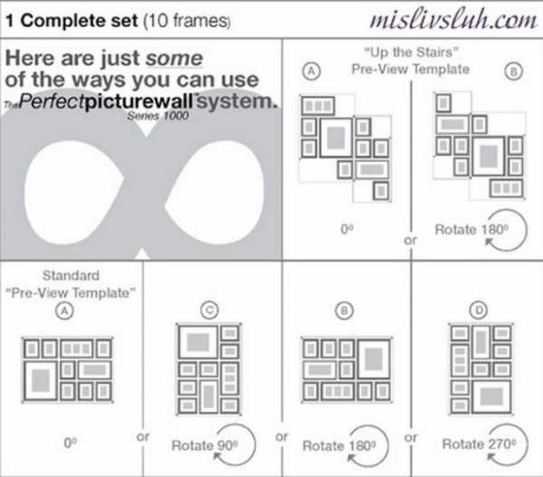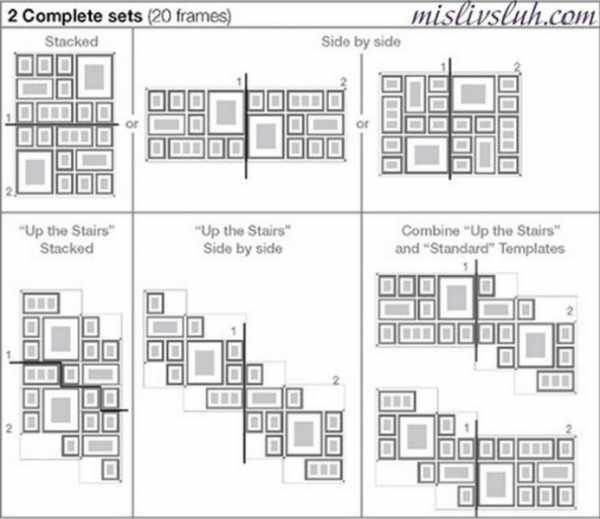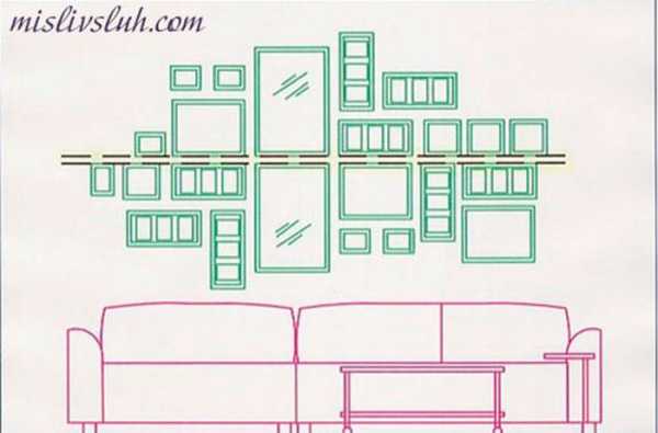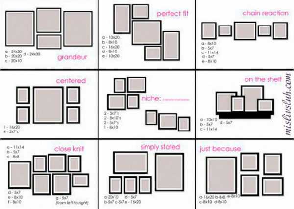 Далее приведем другие популярные схемы развешивания картин и фотографий на стене: