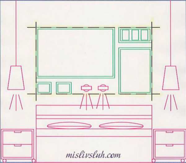 На этом рисунке симметрию создают предметы интерьера.
