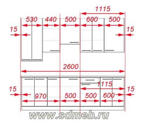 - Ширина кухонного гарнитура – это один параметр для верхнего и нижнего яруса.
