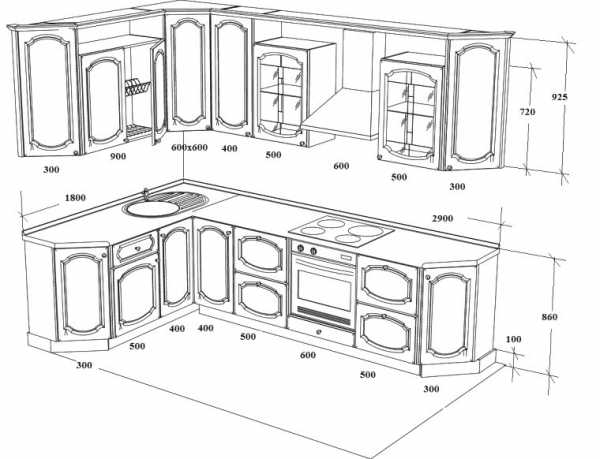 Габариты кухонных гарнитуров
