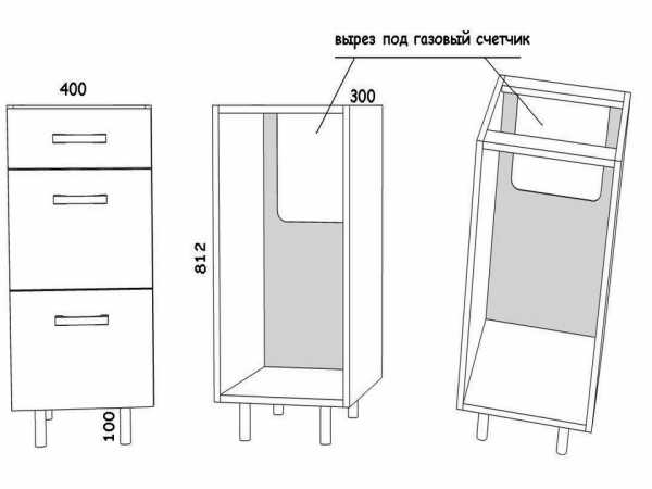 - учитываются первоначально габариты варочной зоны, так как стандартная высота нижних тумб должна быть равна высоте газовой или электрической плиты;