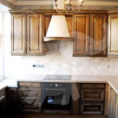 Фасады из массива дерева – наиболее традиционное решение для кухонь в стиле «классика». Чаще всего для таких гарнитуров используется массив благородных пород – дуба, бука, ясеня, привлекающих взгляд красотой текстуры дерева и богатством оттенков. Во все времена массив натурального дерева был символом высокого статуса, надежности и долговечности.
