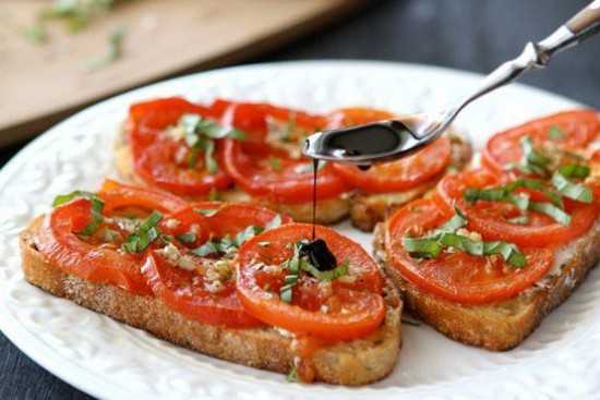 Слегка поджариваете ломтики хлеба с обеих сторон. Горячие кусочки хлеба натираете чесноком, кладете слой сыра (желательно, моцареллы), сверху — помидоры с базиликом и сразу подаете к столу.