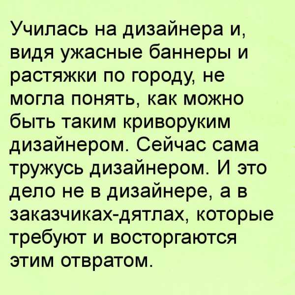 В профессии дизайнера, бывает очень много смешных ситуаций и недоразумений со стороны заказчика. В подтверждению этому привожу подборку анекдотов из жизни дизайнеров и полиграфистов. Читайте и наслаждайтесь.))