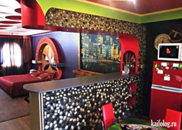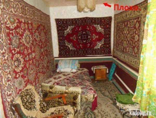 Если вы не дизайнер, то и не стоит ничего дизайнить в своей квартире — оставьте это дело профессионалам, причём, сначала посмотрите на его предыдущие проекты, чтобы потом не жалеть о потраченных деньгах и времени. Ну а если вы все-таки решили самостоятельно обустроить своё жилище, дам вам пару советов. Для начала выкиньте весь ненужный хлам из дома. Не используйте ярких тонов в отделке и мебели, а если вы любите яркие цвета, то лучше просто добавить несколько ярких деталей: подушки на диван, картина, занавески, коврик. Напрочь забудьте про хенд мейд, дешёвые китайские статуэтки и прочие безделушки, захламляющие пространство. Кстати, самостоятельно занимать дизайном мебели тоже не советую: такая услуга есть во всех мебельных салонах, но вы должны знать, что сделано это не для вашего удобства, а для экономии на дизайнере. А теперь смотрите подборку фото приколов про самый адский дизайн квартир. Я не стала относить эти приколы к чисто русским, так как в ней собраны фото со всего СНГ.
