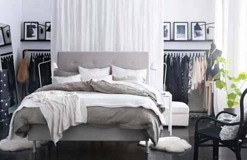 В случае, если размеры спальной комнаты исключают использование габаритных ковров, можно ограничиться миниатюрными ковриками, размещенными у подножья кровати.