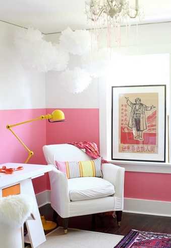 Линии цвета могут повторять формы мебели, декора и прочих интерьерных деталей. Это прекрасное решение для современных интерьеров и для помещений в ярком стиле поп-арт.
