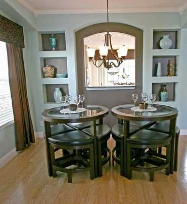 Очень хорошо, если в планировке комнаты имеются ниши. Их при покраске стен в комнате оформляют в насыщенные цвета, при этом основные поверхности остаются в спокойных и светлых тонах. Интерьер приобретает притягивающую глубину. Стопроцентно выгодно смотрятся сочетания: