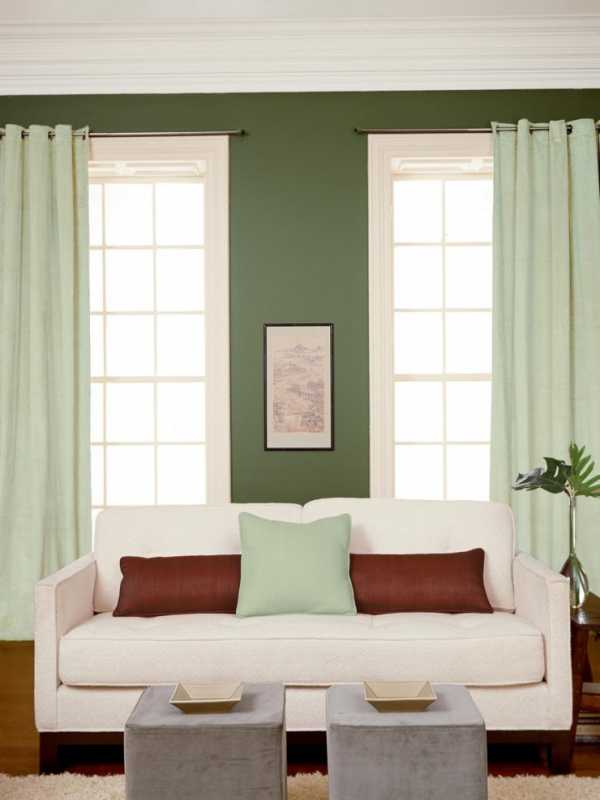 Сделать однотонный фон в гостиной не проблема, но мечтать в этом случае об уникальности обстановки не придется. Хотите чего-то потрясающего – подумайте об использовании в декоре помещения двух, а то и более оттенков. Примеры модной покраски стен в квартире можно найти в интернете.