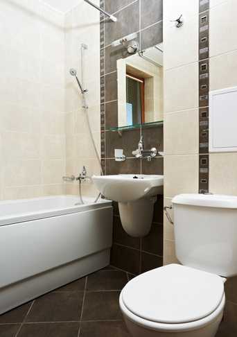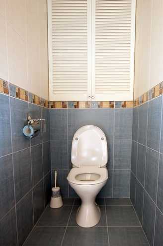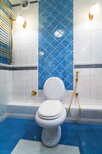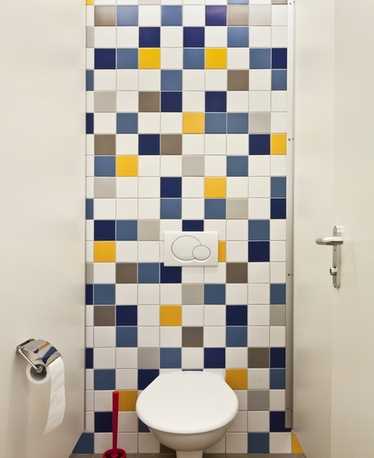 Так, например, высокая полоса за унитазом в узком туалете может визуально еще более сузить его, сделав санузел похожим на трубу. Если выделить несколько участков в ванной комнате, может возникнуть «сумятица».