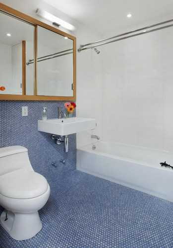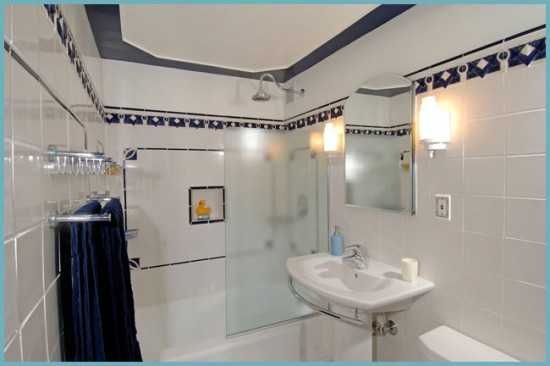 Увеличит пространство плитка холодных оттенков. И нужно ее класть на стенах горизонтально, а на полу диагонально. Еще помогут увеличить пространство фризы, расположенные в стыках верха и низа или сделать отличающиеся по цвету бордюры.