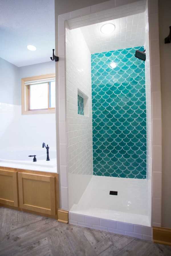 Раскладку плитки удобнее начинать со стены, на которую больше падает взор. Продумывая будущий интерьер знайте, что верный акцент поможет скрыть или подчеркнуть недостатки.