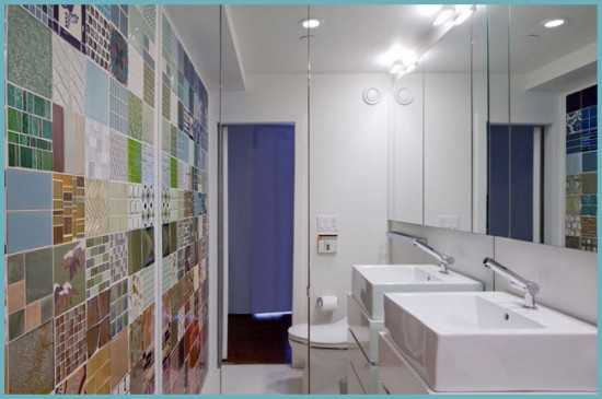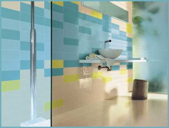 В этом случае берут несколько цветов — контрастных или похожих, обычно 2-3 оттенка и ими отделывают стены ванной. При этом цвета не должны перемешиваться. Одним цветом выкладывается одна стена, другим — вторая и т. д. Обязательно нужно выбрать гармоничное сочетание цветов. Особенности:
