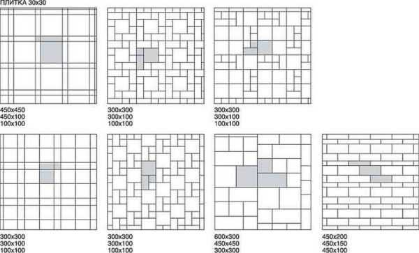 Есть также варианты для комбинации прямоугольной и квадратной плитки — лабиринт, если способы с использованием фрагментов разного размера.