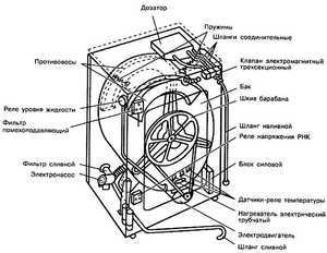 Кратко рассмотрим основные составные части, без которых функционирование стиральной машины невозможно.