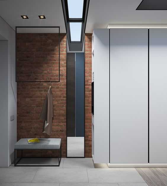 Примеры интерьера прихожей с кирпичной стеной