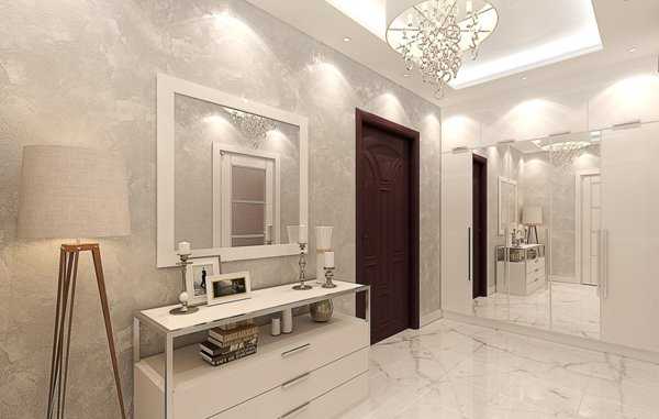 Мощные лампы позволяют не только разглядеть самые мелкие предметы и детали, но и визуально расширят пространство, сделают его светлее и теплее. В дизайне маленькой прихожей это особенно важно. Яркие и блестящие элементы на обоях создадут обратный эффект – помещение сузится, блики будут отвлекать внимание.