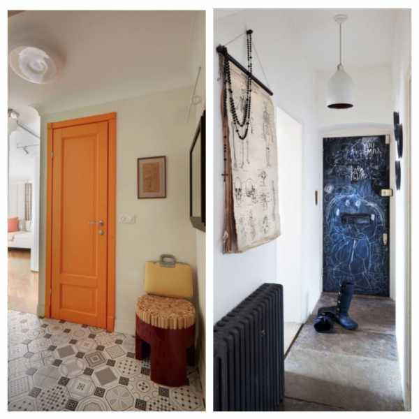 Прежде всего, очень стильно и необычно выглядит яркая дверь. (Если не хотите смущать соседей, можете покрасить её только с внутренней стороны!)