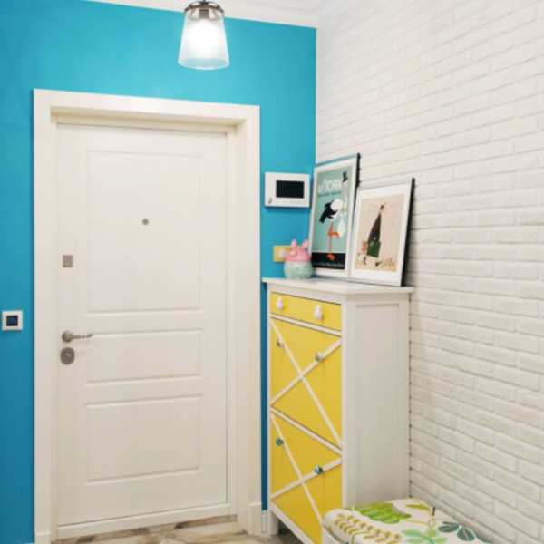 Приятный для глаз голубой цвет тоже хорошо смотрится в прихожей