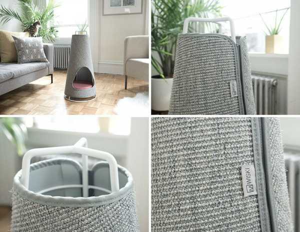 Настенный домик – это цилиндр из пластика либо металла, который обтягивают любой тканью, но мягкой. На дне такого цилиндра следует расположить подушечку для отдыха. Этот домик вешают на стенку так, чтобы кошке было удобно туда запрыгнуть, или же ко входу пристраивается лесенка, по которой кошка будет заходить в свой дом