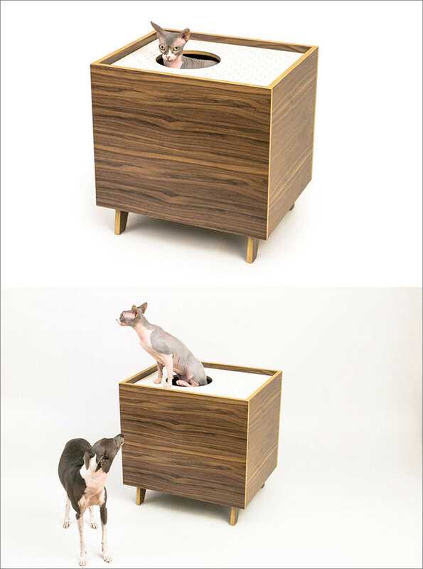 Кошачий туалет не хочется оставлять на виду, при этом он должен быть легко доступен для питомца. Modernist Cat разработали мебель в стиле ретро, которые можно использовать для кошачьего туалета, кошачьего домика и при этом их можно использовать в качестве скамьи или консоли для мелочей в прихожей.