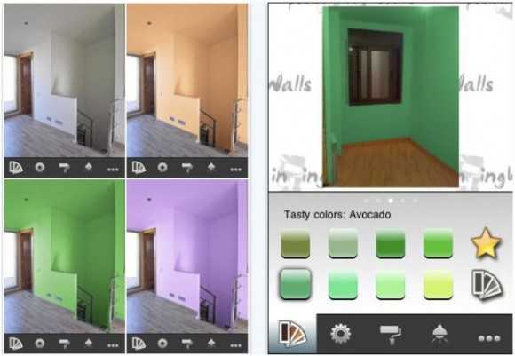 8. PaintingWalls Pro: рейтинг программы – 2.5 звезды, цена – $1.99. Загрузите в приложение фотографию вашего интерьера и выберите одну из множества цветовых палитр, предустановленных в программе, для сравнения. Само собой, вы можете изменить предустановки по собственному вкусу, сохранить текущие изменения и продолжить работу с проектом позже. Отличный выбор для начинающих дизайнеров, постигающих азы искусства. Также подойдет для быстрого моделирования обстановки.
