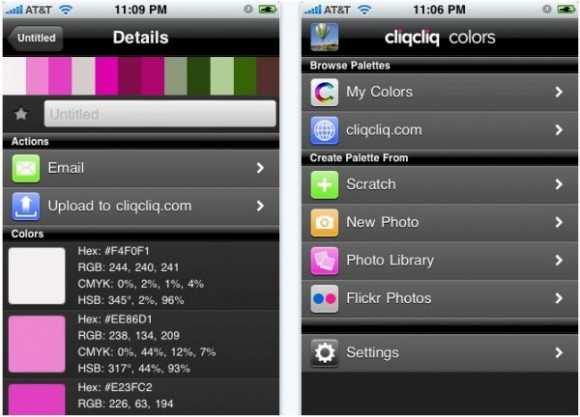 1. CliqCliq Colors: рейтинг программы – 4 звезды, цена – $2.99. Отличный инструмент для проверки сочетаемости цветов. Сделайте с помощью iPhone фотографию интерьера и откройте ее с помощью приложения. Программа автоматически может преобразовывать цвета RGB, HSB и CMYK. Приложение пригодится для DIY, дизайнеров и даже разработчиков.