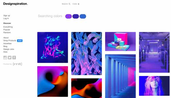 Большая галерея картинок с соответствующими им цветовыми палитрами. Доступен поиск по цветам, также есть возможность отсортировать фото по популярности.