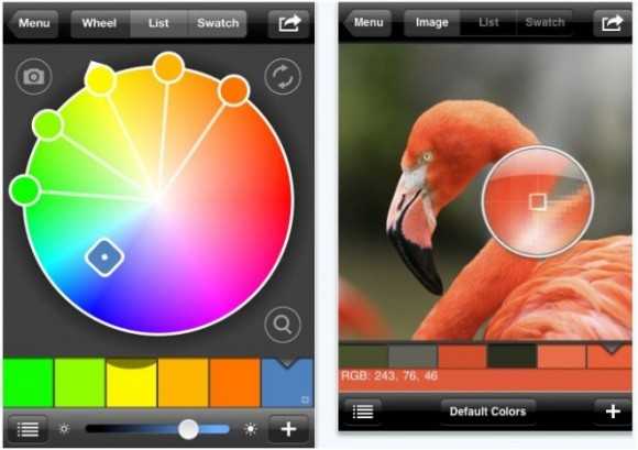 4. ColorSnap: рейтинг программы – 3 звезды, бесплатна. Всегда хотели иметь личного дизайнера, который подсказал бы, какие цвета лучше всего сочетаются? С этим приложением вы практически получаете своего персонального помощника в этом вопросе. Просто откройте в приложении фотографию и оно подскажет вам, какие сочетания цветов актуальны, а от каких лучше отказаться. Приятными опциями будет возможность поделиться результатами вашей работы с друзьями посредством Facebook или электронной почты. А карта с местоположениями магазинов должна окончательно склонить чашу весов в пользу этого небольшого приложения.