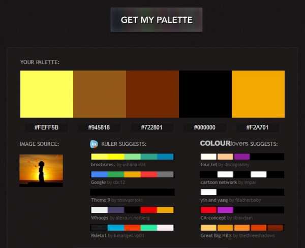 Вы можете загрузить свое изображение, и программа выведет вам цветовую палитру данной картинки