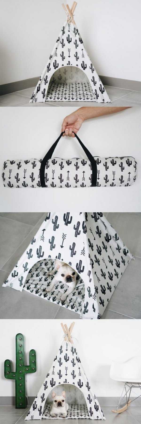 На дно вигвама прикрепляется ткань или укладывается плоская удобная подушка, на которой кошке будет удобно лежать. С внешней стороны вигвам обшивается текстилем.