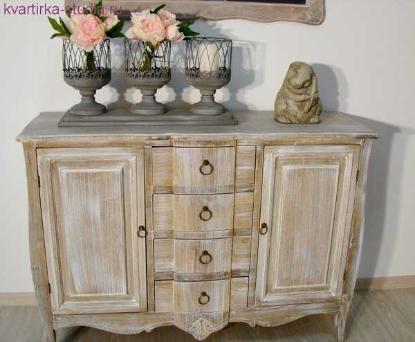 - Центральным акцентом интерьера нередко выступает древний комод, практически полностью лишившийся отделки.