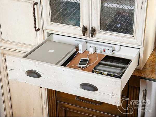17. Если перенести удлинитель или розетку в ящик на кухне, получится удобно место для зарядок