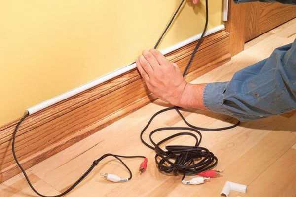 Мы решили вывести этот пункт отдельно, так как способ пусть и скрытый, однако все же подразумевает размещение за пределами стены. При этом таким образом проводят не только проводку и «слаботочку», но также и шнуры с проводами. Так, в строительных магазинах можно без труда приобрести плинтусы с местом для кабеля, что сильно сэкономит время и силы по сравнению с обустройством всего внутри стены. Но нужно понимать, что в таком виде проводка и шнуры будут более уязвимыми для механических воздействий и затоплений.