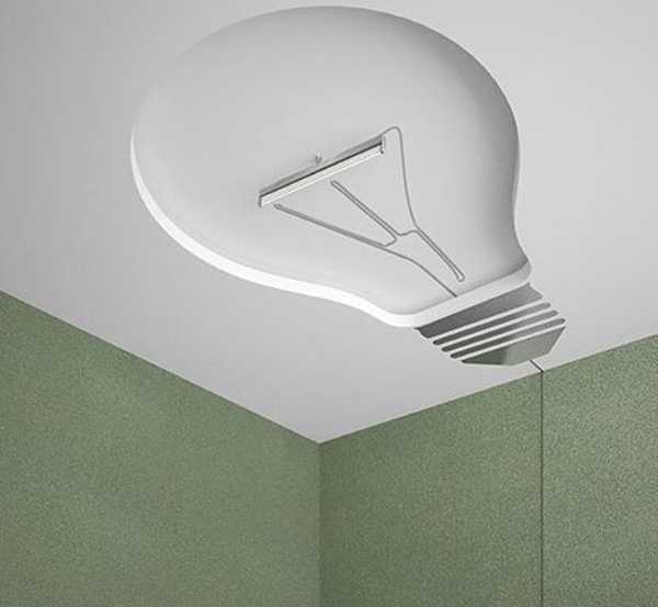 Арт-объект. Раз речь идет об электричестве, то можно сделать оригинальное оформление потолка в виде гигантской лампочки. Эта конструкция фиксируется на потолке.