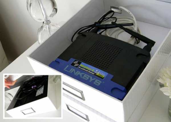 2. Коробки под цвет интерьера, в которых можно спрятать модем и wi-fi-роутер