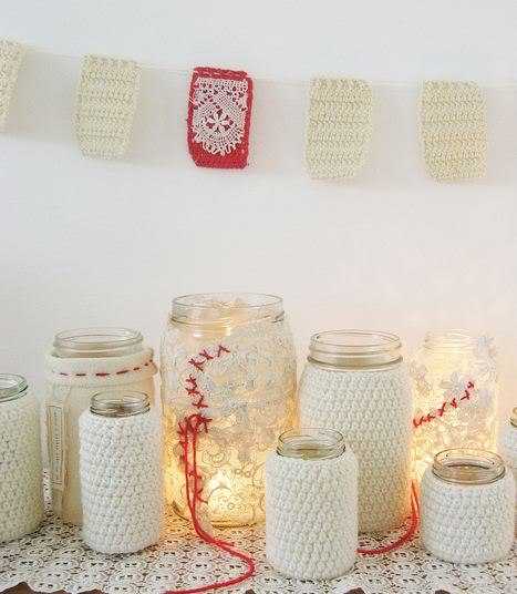 Для декорирования баночек используется вязание. Нежно и романтично! Применять эти емкости можно для разных целей по своему усмотрению.