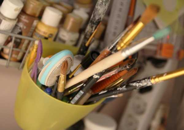 На нее же вешаю стаканчик с самыми ходовыми инструментами: кисти,карандаши, и тд.