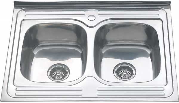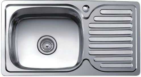 Изделие стандартной формы имеет прямоугольный вид с закругленными уголками. Может быть предусмотрена основная и дополнительная чаши. Кроме самой раковины, конструкцию как правило входит соединенная с чашей металлическая столешница. Она выполняет полезную функцию – как дополнительная поверхность раковины для сушки овощей, фруктов, посуды после мытья. Поверхность дополнительного отсека выполнена в форме впадин и выступов, чтобы назад в раковину стекала вода и не падала посуда и продукты. Она размешается как с лева, так и справа от чаши, в зависимости от планировки кухни.